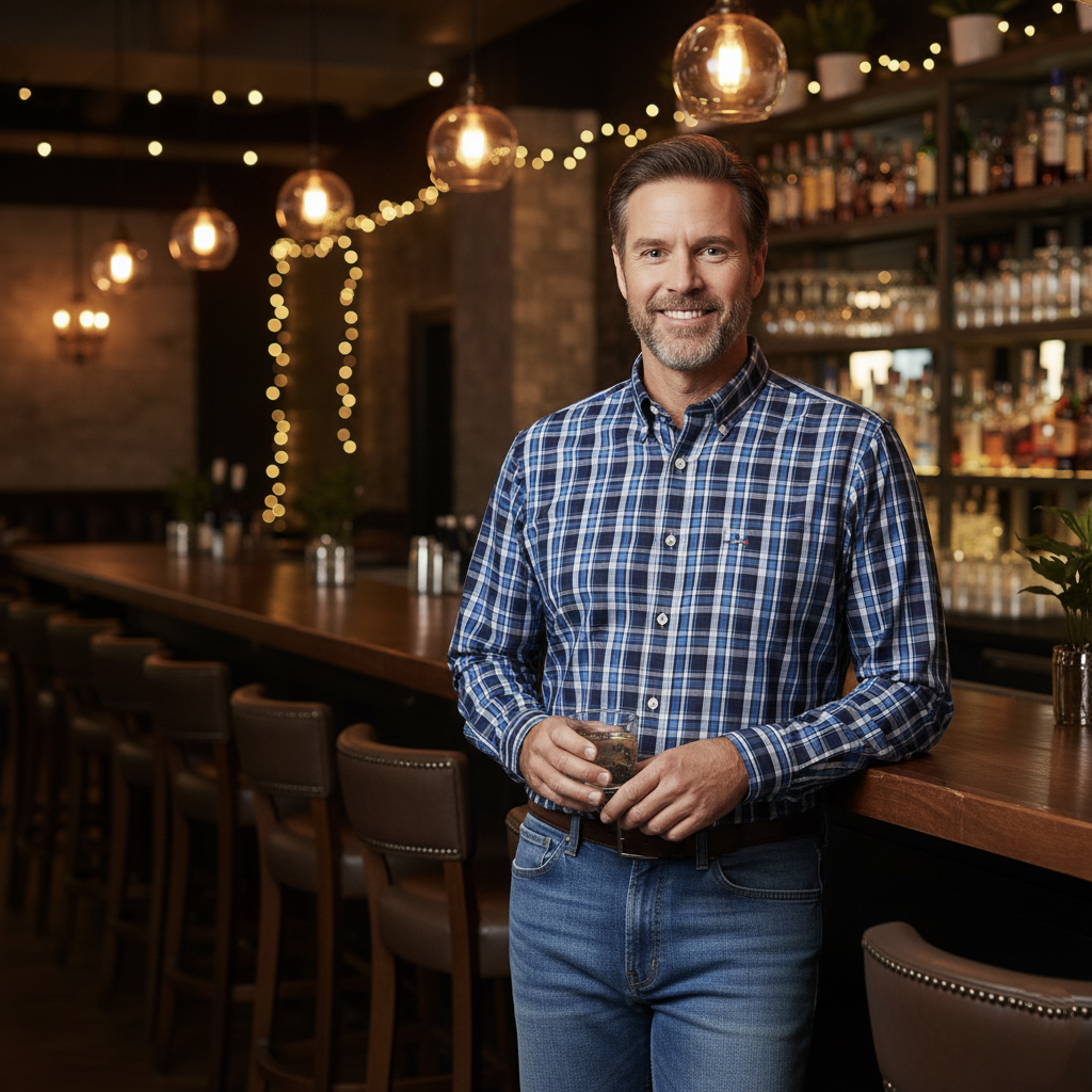 Camisa de vestir bottom down a cuadro azul cielo
