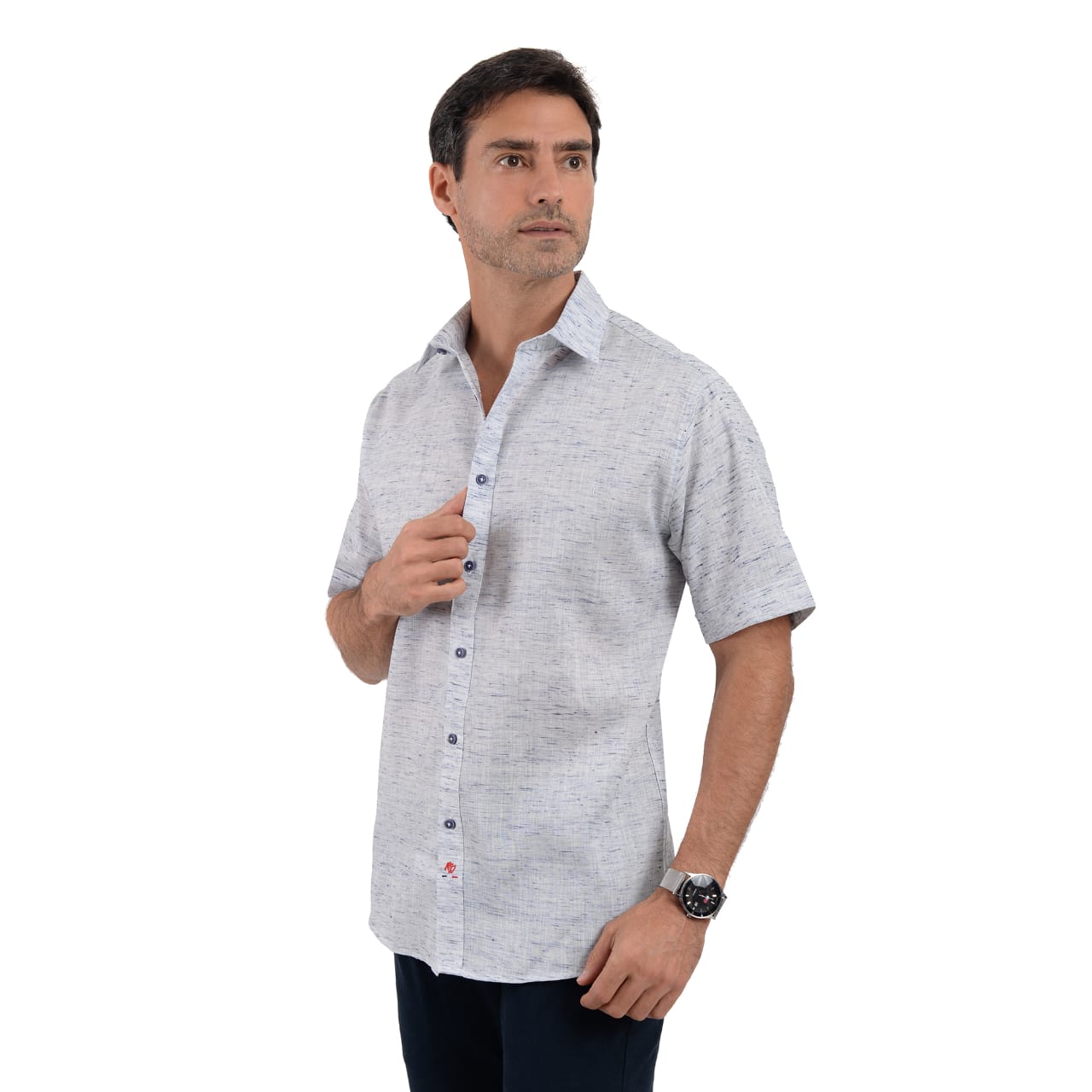 5. Camisa Resort De Manga Corta De Lino Gris Oxford Para Hombre