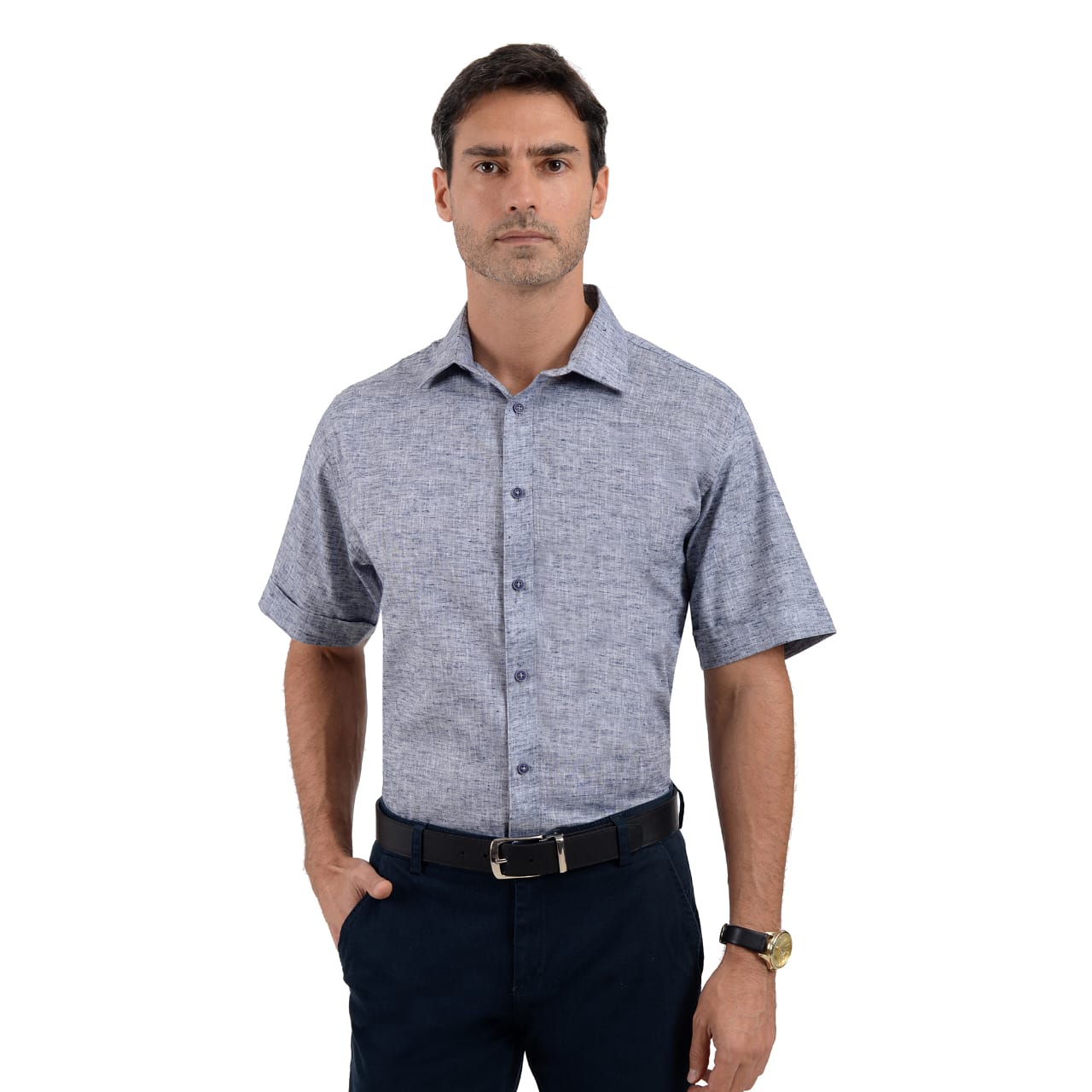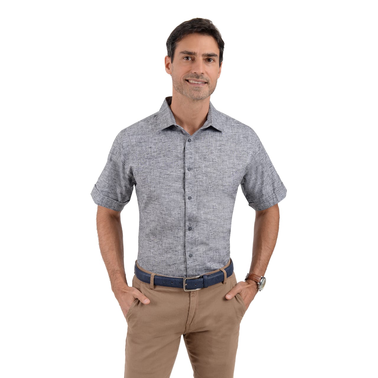 | Buy Now: Camisa Resort De Manga Corta De Lino Gris Oxford Para Hombre |