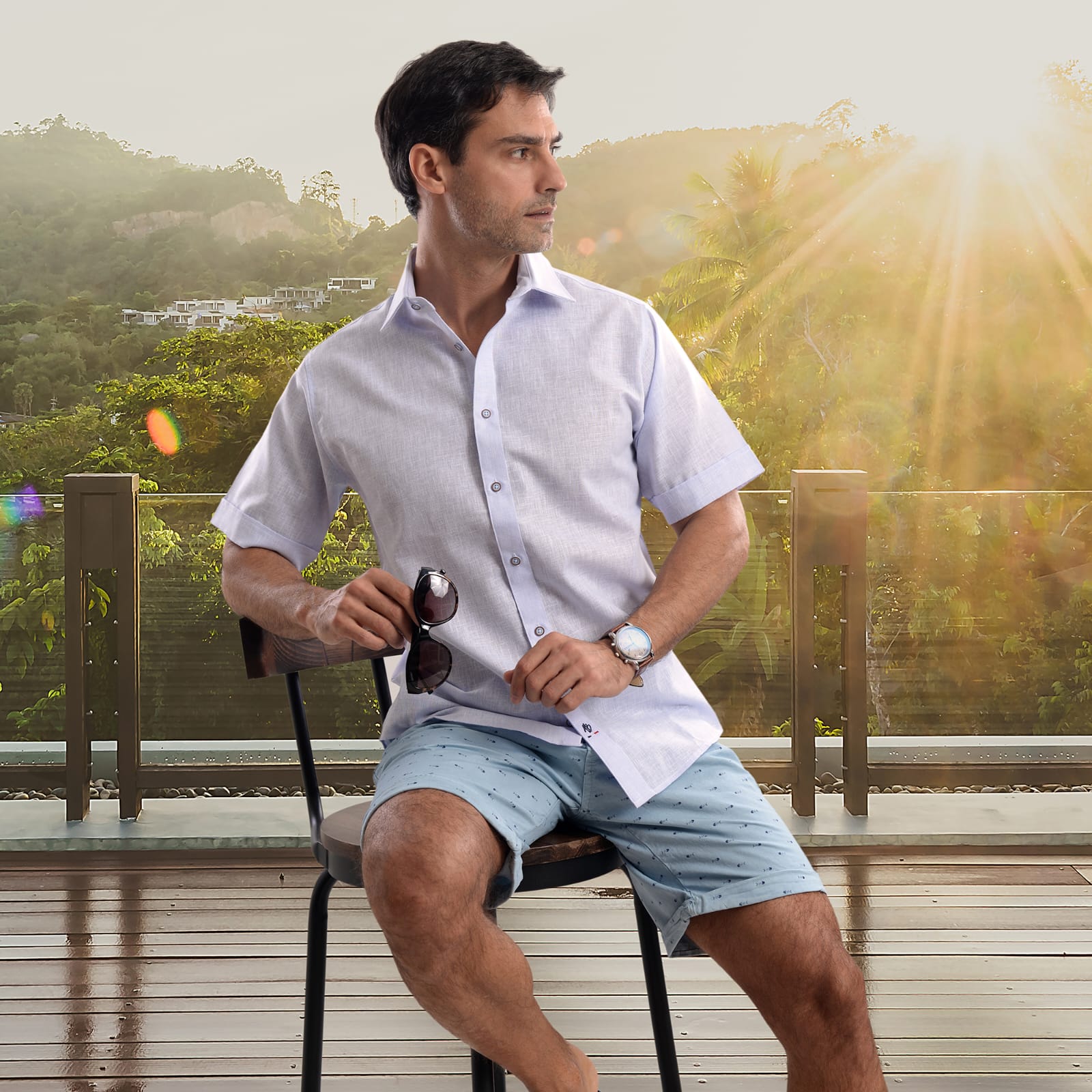 | Buy Now: Camisa Resort De Manga Corta De Lino Azul Claro Para Hombre |