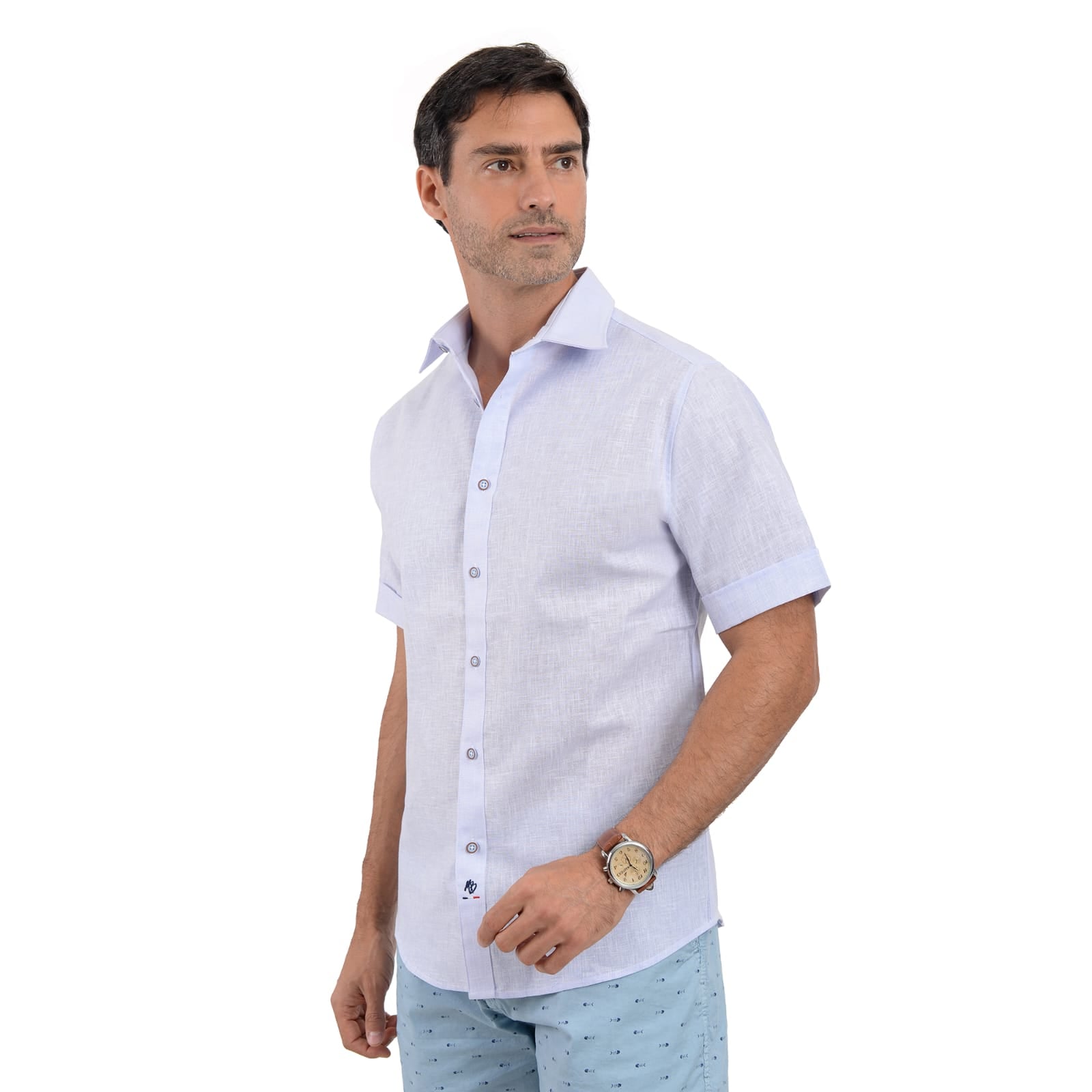 17. Camisa Resort de Manga Corta de Lino Blanco para Hombre
