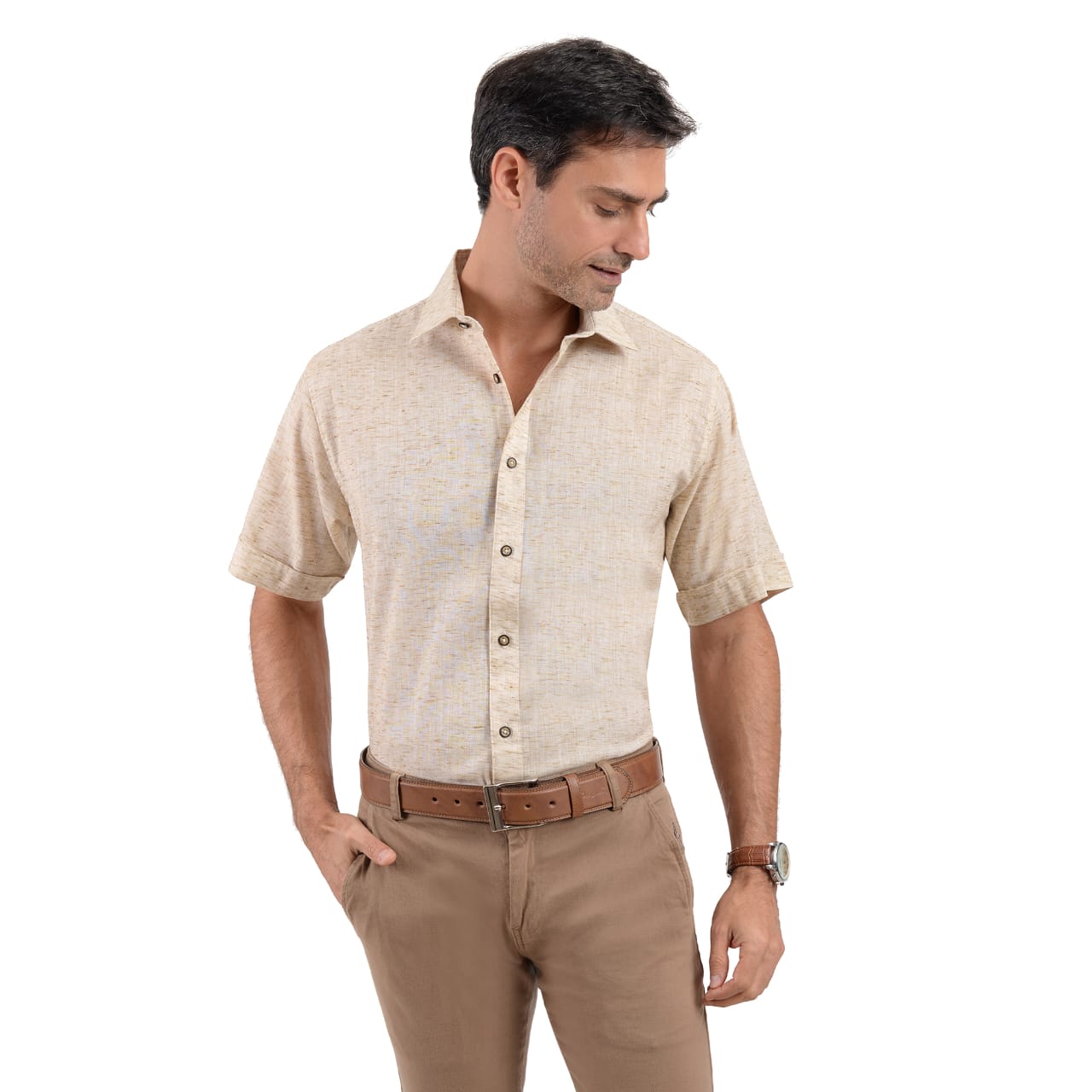 18. Camisa Resort De Manga Corta Color Beige Hombre Outfit