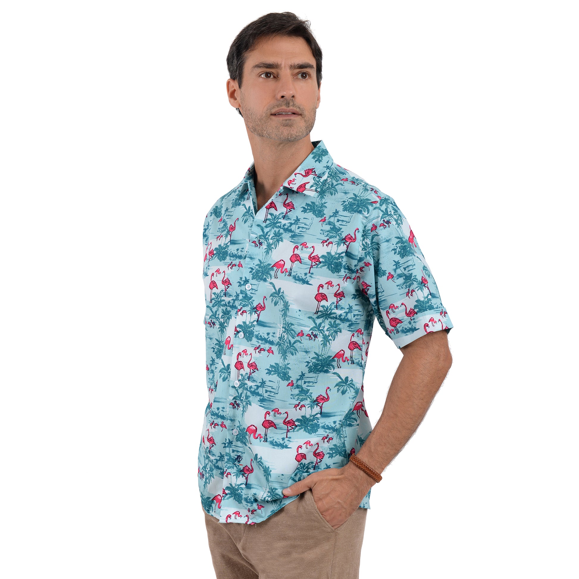 | Buy Now: Camisa Hawaiana De Flamencos De Manga Corta Para Hombre |