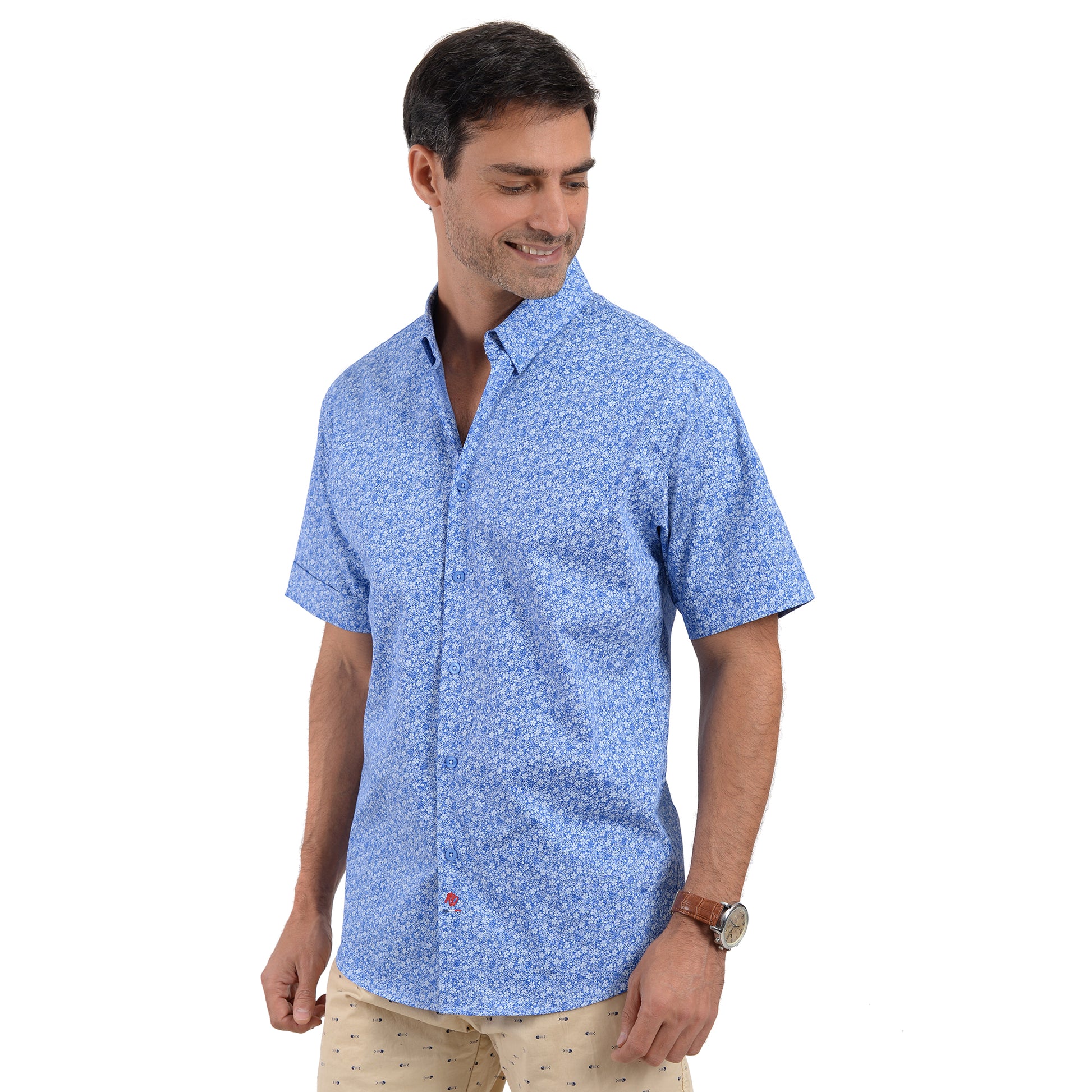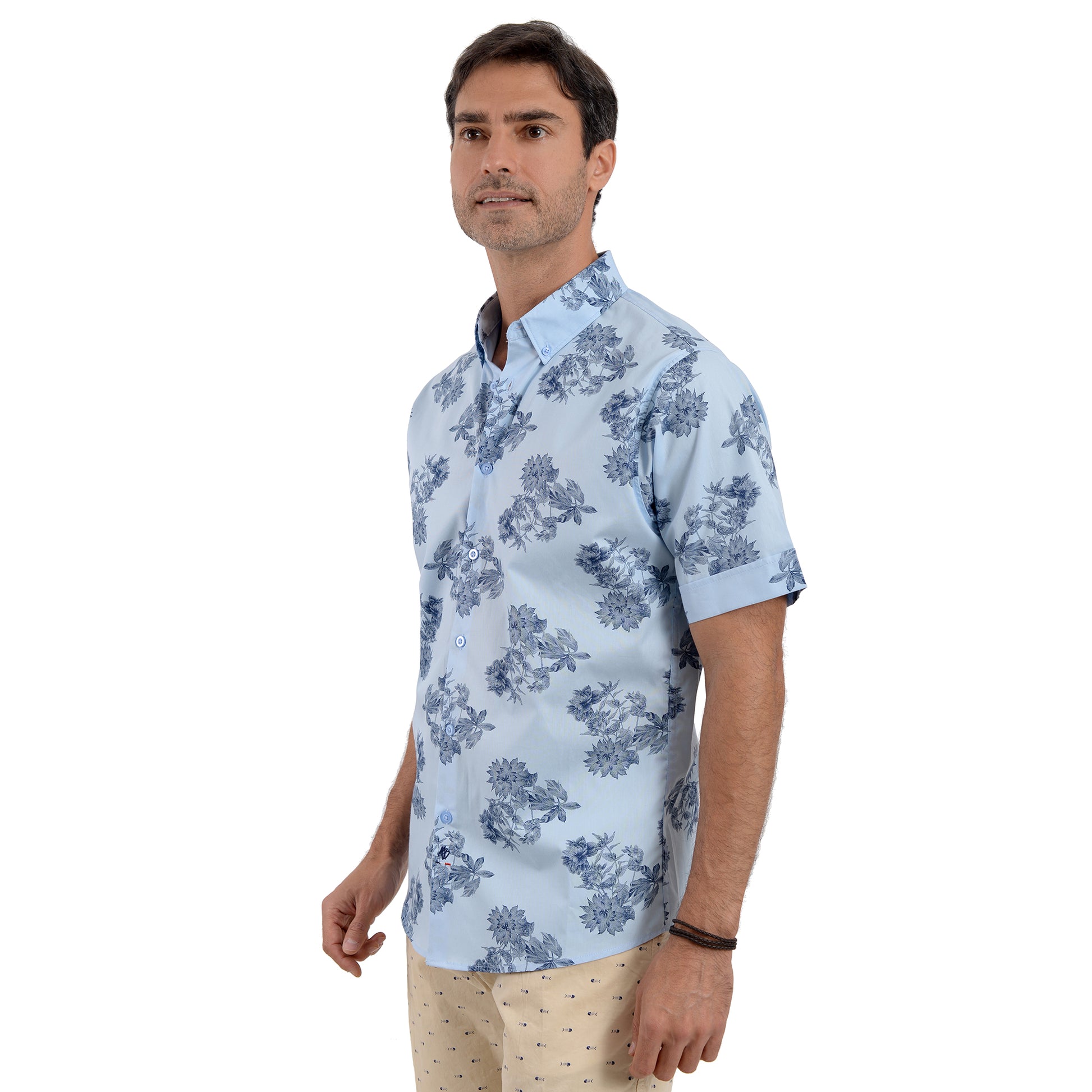 Características: Mangas cortas, Cuello abotonado, Estampado floral vibrante, 100% algodón.
