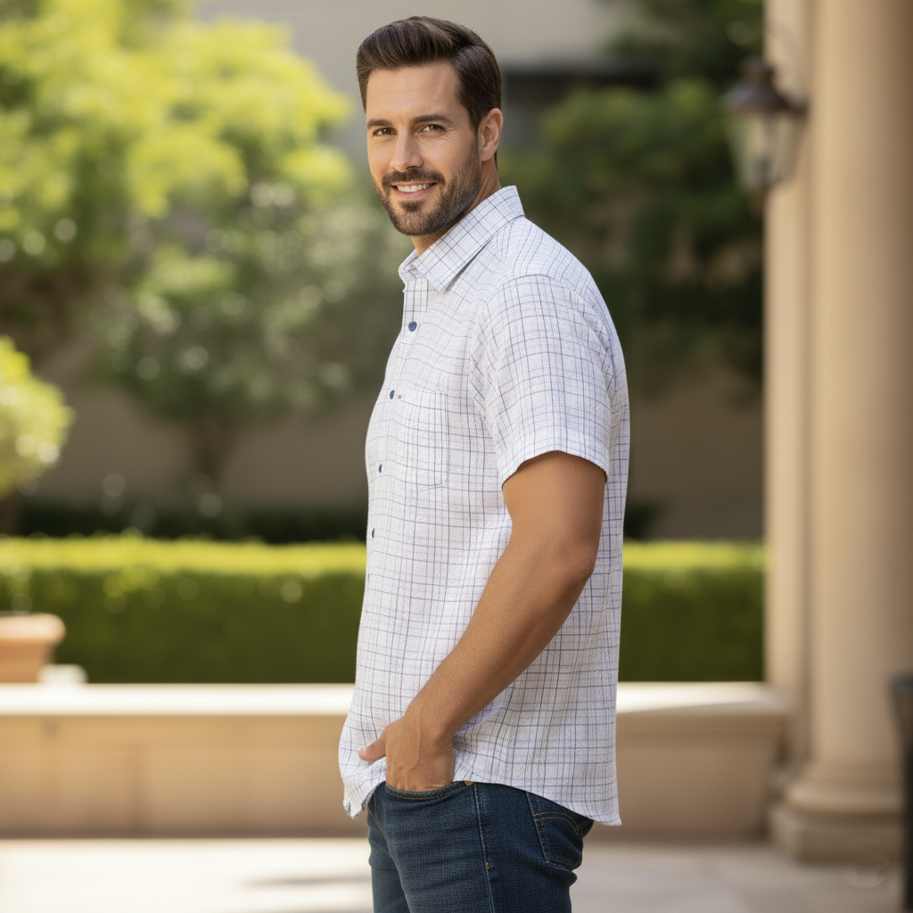Camisa Michel blanc de chazarilla color blanca con un cuadros de diferentes tipos de azul es una belleza de camisa, para poder usar en cualquier tipo de clima cálidos y verse de una manera elegante asi como a la vez casual