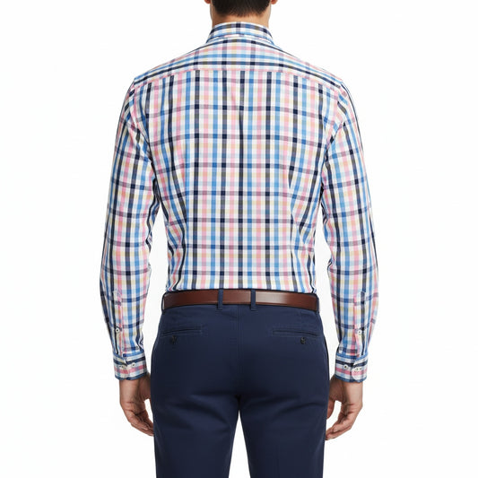 Camisa de vestir bottom down a cuadro azul cielo